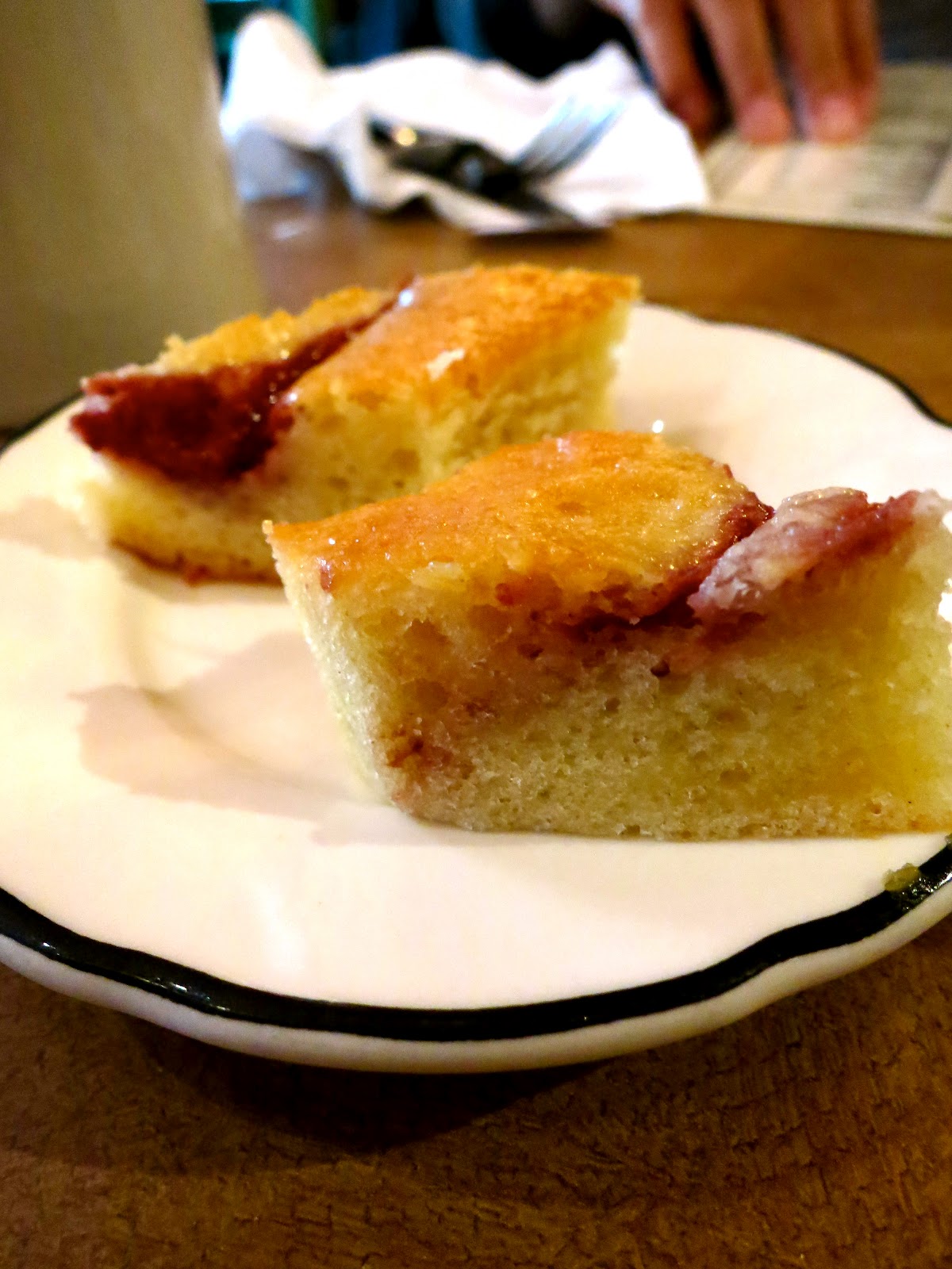 Now for the food review. Coffee - typical refillable taste. They are very attentive to your coffee mug, refilling it so often even if you've just had a sip or two. They have complimentary breakfast bread (so they call it), but it's actually cake-ish - sort of corn muffin but with blueberry flavor. I liked it. Bobby ordered the Denver Omelette - as you can see in the photo below, it was overflowing. And I thought we're eating healthy haha! It was good - you can't go wrong with ham, bell peppers, and onions, but what made it a little different and sinful is that it had cream cheese inside and out. A lot of it. It was also served with a cup of fresh fruits and english muffins with butter and jam. Not bad for $11 because you can share this meal as it was a definitely large portion. But of course we didn't share, tsk, tsk.